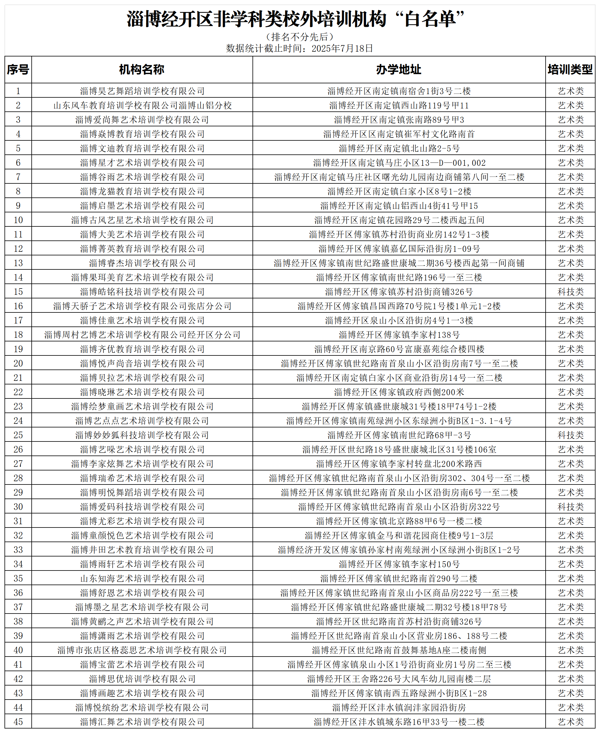 经审核与综合评估,现公示淄博经济开发区2024年校外培训机构白名单及信用等级评价结果。